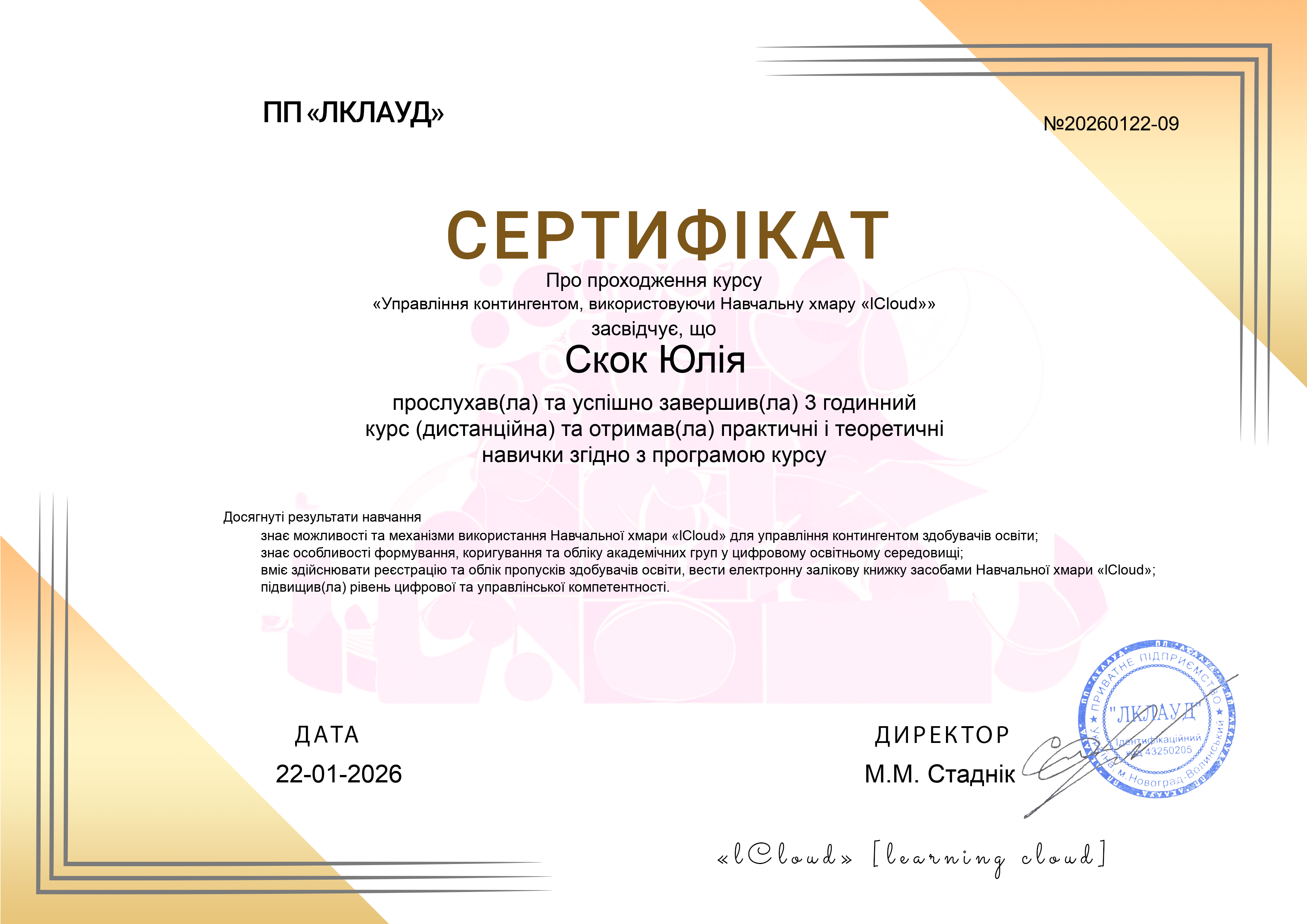 Скок Юлія22.01.2026Сертифікат № 20260122-09