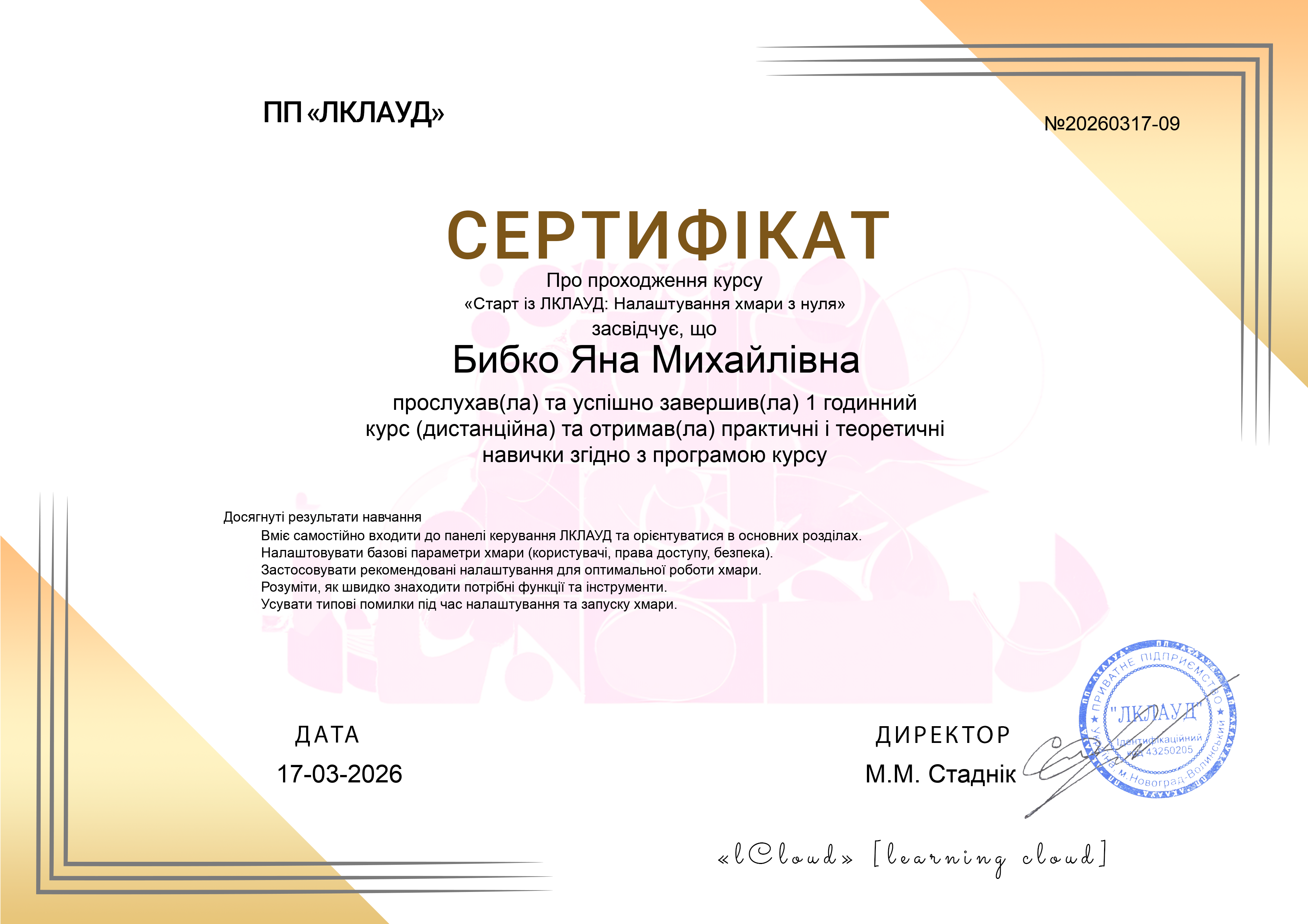 Бибко Яна Михайлівна17.03.2026Сертифікат № 20260317-09